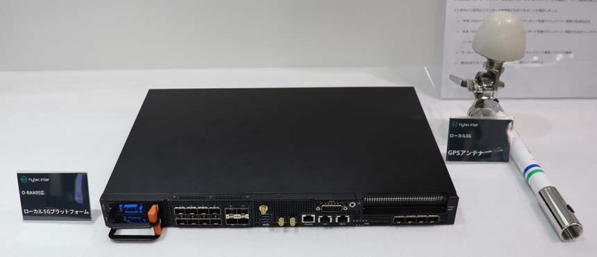 ハイテクインターは、自社開発したO-RAN対応のローカル5Gプラットフォームを展示している。NECプラットフォームズ製のローカル5G屋外基地局やPegatron 5G社の屋内基地局など、複数基地局との相互運用性を担保。マルチベンダー構成で提供することで、コストを抑えながら、自社環境に最適な形でローカル5Gを構築できるとのことだ。