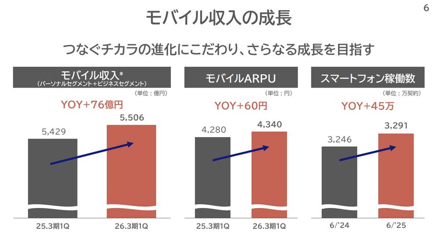 新プラン「auバリューリンクプラン」が功を奏し、モバイル収入は好調