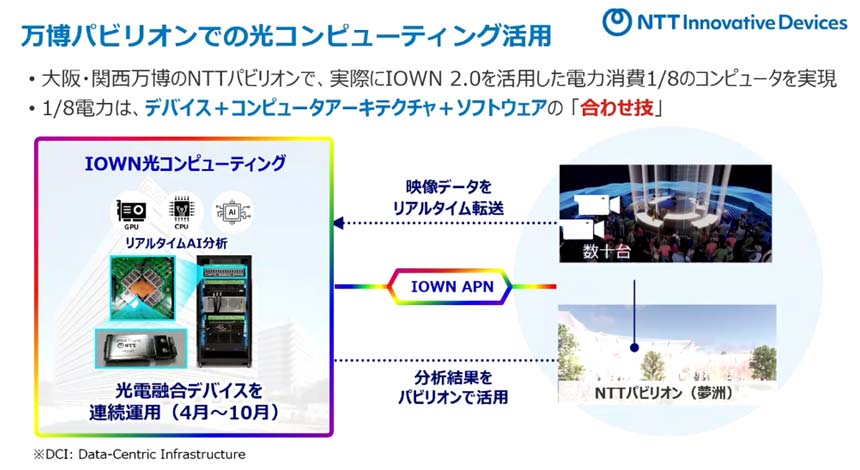 NTTは2023年3月、データセンター(DC)間やサーバー間をオール光で接続する「APN(オールフォトニクス・ネットワーク) IOWN1.0」を発表。そして今年4月に開幕した大阪・関西万博にて、コンピューター内の基板(ボード)間をAPNで接続する「IOWN2.0」を披露している。
