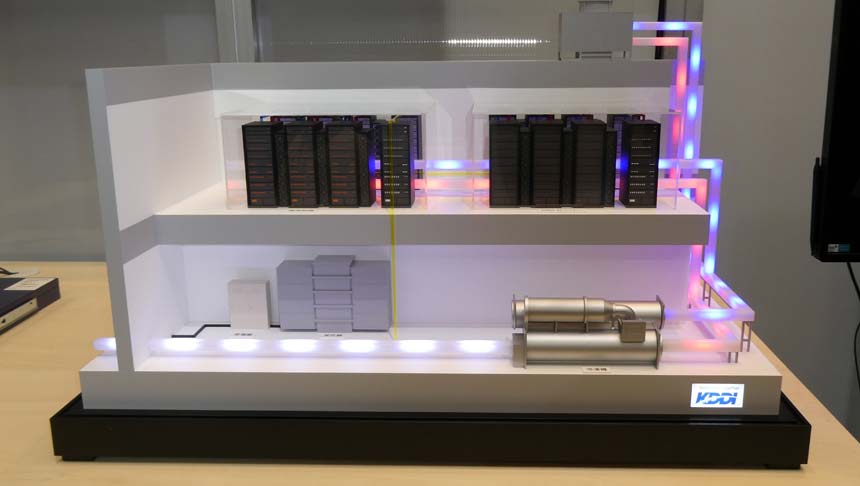 2026年1月下旬からは、シャープ堺工場の跡地を活用したAIデータセンター「大阪堺データセンター」を稼働予定で、これを模したミニチュアモデルも展示されている。