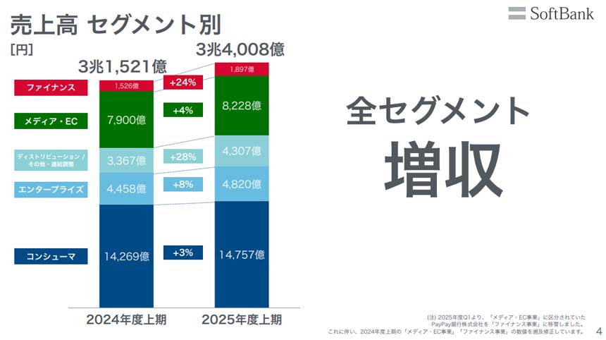 決算については、2Qの売上高は前年度比8%増の3兆4008億円、営業利益は同7%増の6289億円と増収増益だった。売上高・営業利益ともに過去最高とのことだ。