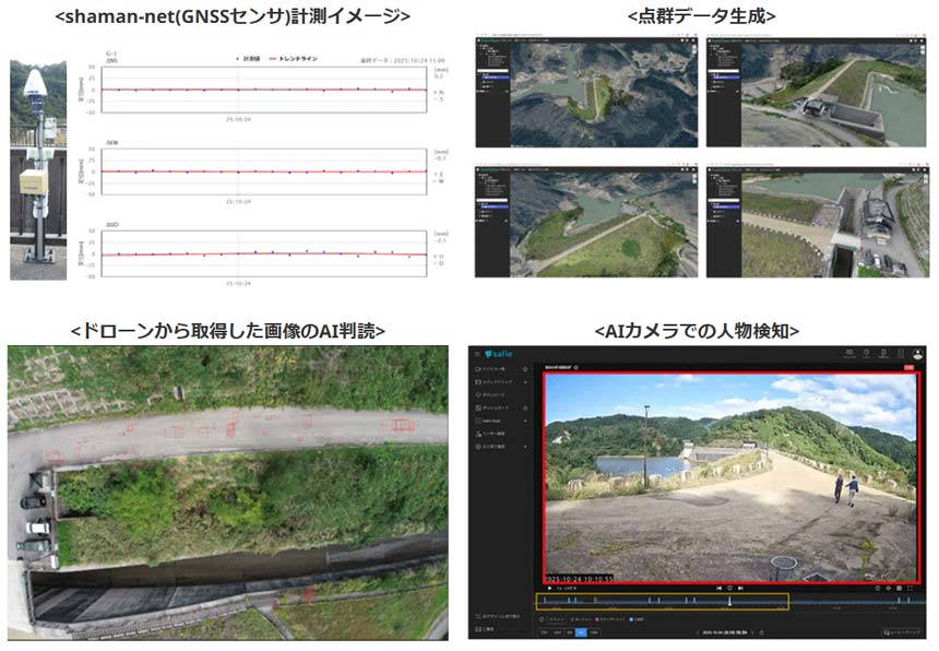 特に、shamen-netが持つ最高約1~2㎜の変位を24時間365日体制で遠隔監視できる高精度なGNSS計測解析技術と、NTNを活用した災害時にも途切れない通信環境を融合することで、アクセス困難なダム施設の点検および平常時の維持管理の高度化・省人化に大きく貢献するダム管理DX手法の有効性を確立した。