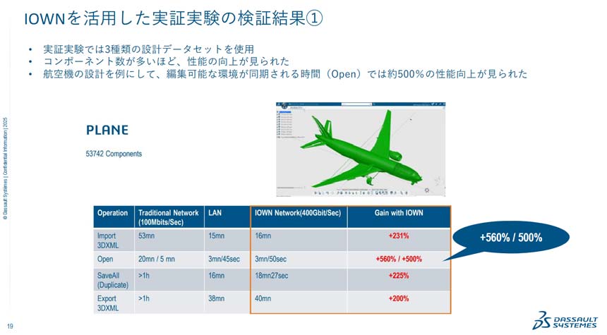 その結果、航空機の3DCADデータをAPNを用いて大手町プレイスに伝送したところ、リアルタイムでのデータ同期・共同編集作業が可能であることを確認したという。