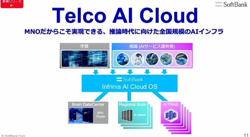 さらに同社は、北海道・苫小牧や大阪・堺にAI向けデータセンター(DC)を建設するなど、地方分散型の「次世代社会インフラ」の構築を目指している。そして今回、「Telco AI Cloud」という新たなAIインフラ構想を発表した。
