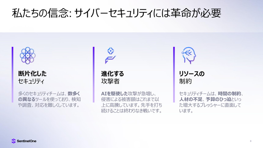 同社 プレジデント 兼 最高収益責任者(CRO)のマイケル・クレメン氏は、様々な業界の企業に共通するサイバーセキュリティにおける課題として、セキュリティツールの断片化、攻撃者の進化、時間・人材・予算といったリソースの制約の3つを挙げた。