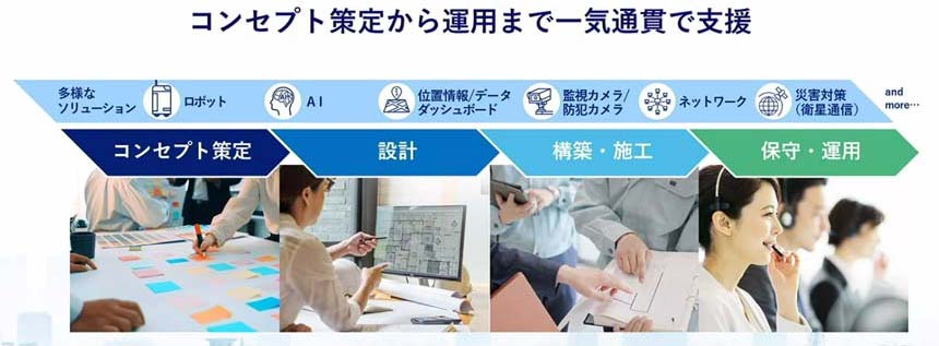 ビルの設計・施工については、空間づくりと通信環境の整備を同時に進めることで、手戻りのないプロセスを実現する。また那谷氏は、「基地局の建設・マネジメントや、パートナー企業の知見を活かす」と話し、パナソニックや関電工、コクヨなど計58社の企業との協業を推進していると説明した。