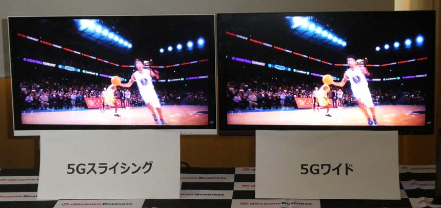 同説明会では、5Gワイドと5Gスライシングを用いた映像伝送を比較するデモも行われた。5Gワイドでは映像にやや粗さが見られた一方、5Gスライシングでは映像がより鮮明に表示されていた。