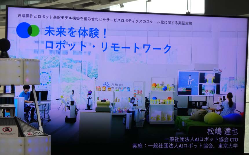AIロボット協会 CTOの松嶋達也氏は、遠隔操作ロボットを活用した「未来のリモートワーク」体験について説明した。「参加者の操作データをAIが学習することで、人とともに成長するサービスロボットの開発につなげる」データエコシステムも特徴で、不足するロボティクス分野のデータを収集していくという。