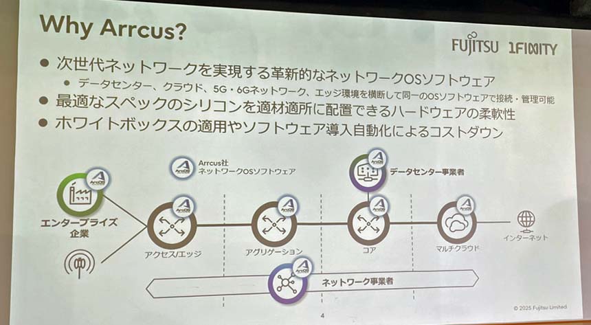 森林氏は、「Arrcusは、ネットワーク業界にゲームチェンジを起こせる企業だ。富士通グループにとって、良きパートナーになると考えている」と話した。